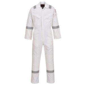 This coverall is perfect for the demands of the offshore industry. Constructed with a highly innovative flame-retardant fabric with high visibility reflective tape double stitched for enhanced visibility. Meeting all the required EN standards, features include triple stitched seams, high visibility strips on shoulders, arms and legs, concealed 2-way front brass zip and two front slant chest pockets with concealed brass zips.