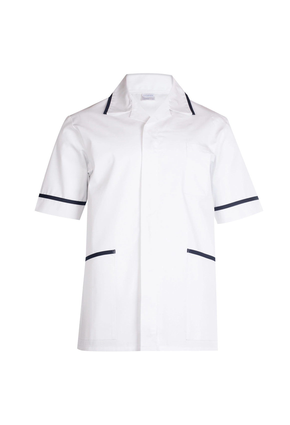- Contrast Trim to Collar, Cuffs, and Pockets